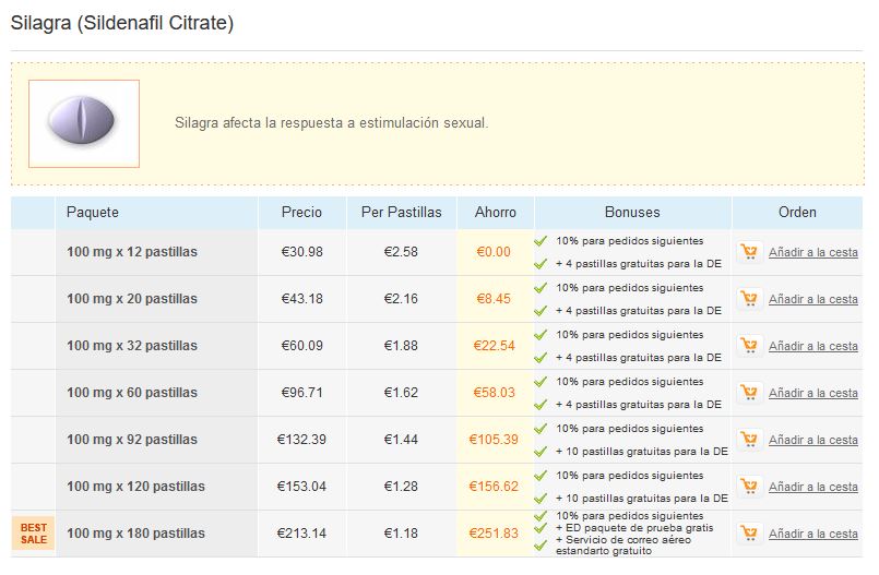Ha encontrado el sitio adecuado para ordenar Silagra en línea. Este medicamento está desarrollado para el tratamiento de la disfunción eréctil y es muy eficaz, ya que está elaborado a base del ingrediente activo mundialmente famoso (sildenafil). No necesita receta médica para ordenar Silagra, porque este medicamento es genérico. En la farmacia online que ofrecemos encontrará precios favorables y medicamentos 100% de alta calidad.