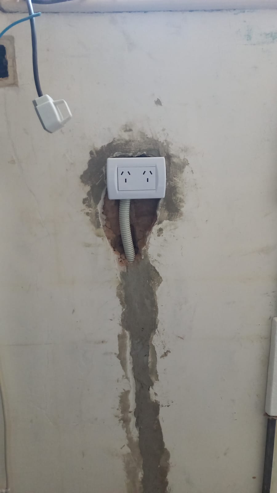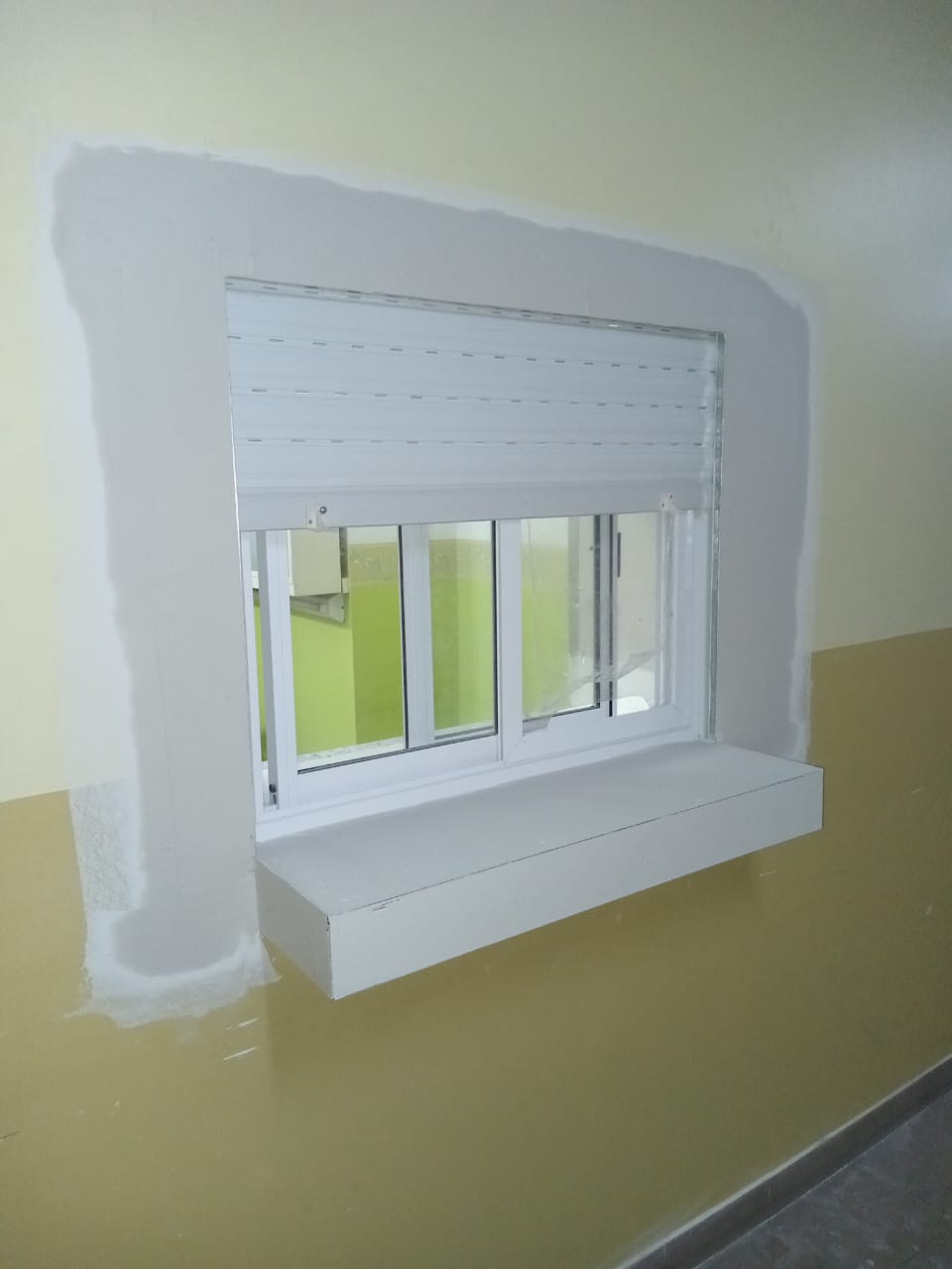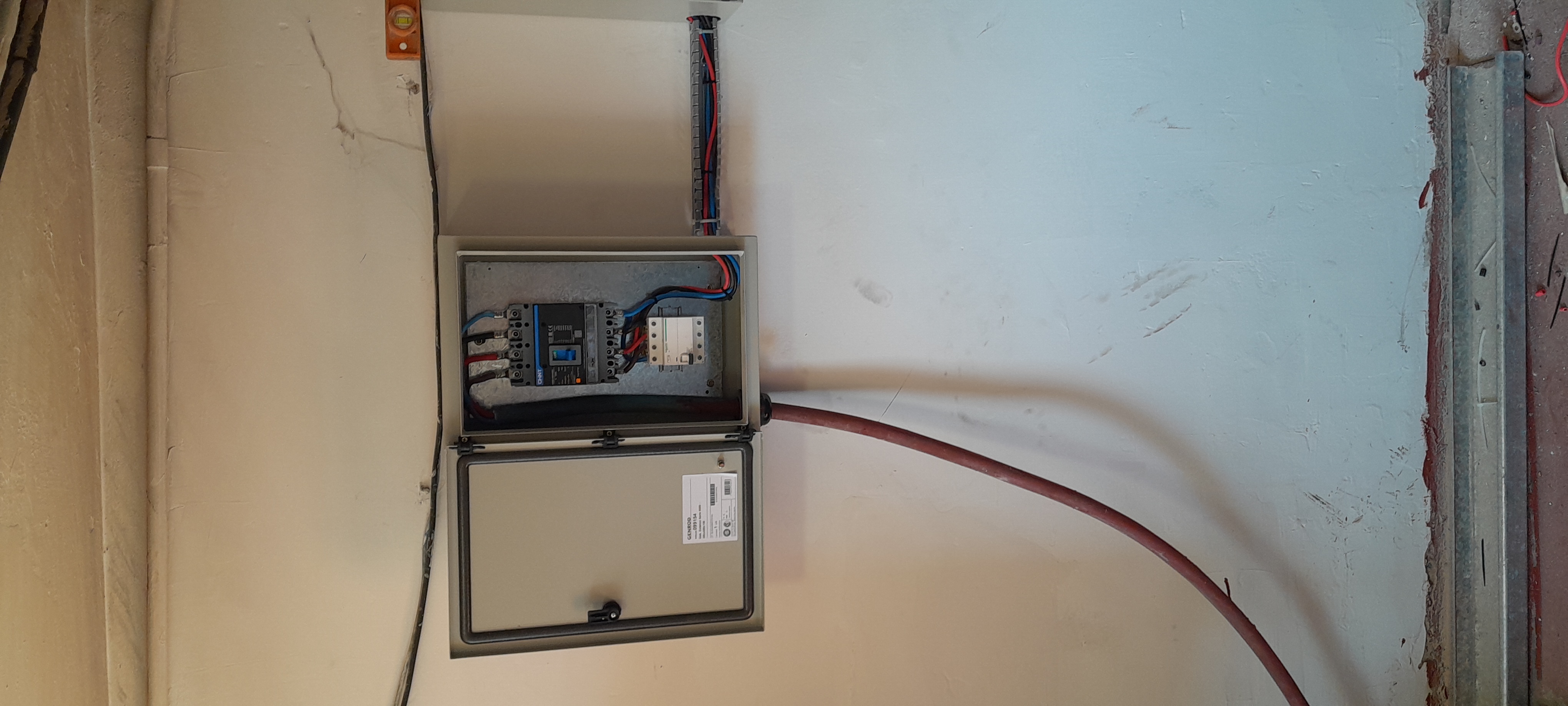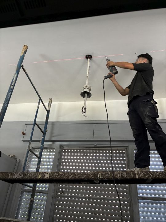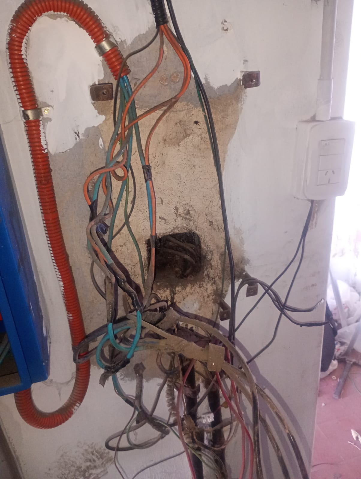 Para lo cual la Asociación Cooperadora se hizo cargo de la compra de los Materiales necesarios y comenzó con el desmonte de una puerta existente, el cegado del vano con mampostería de ladrillos huecos y el canaleteado de los muros para el nuevo trazado de la Instalación eléctrica.