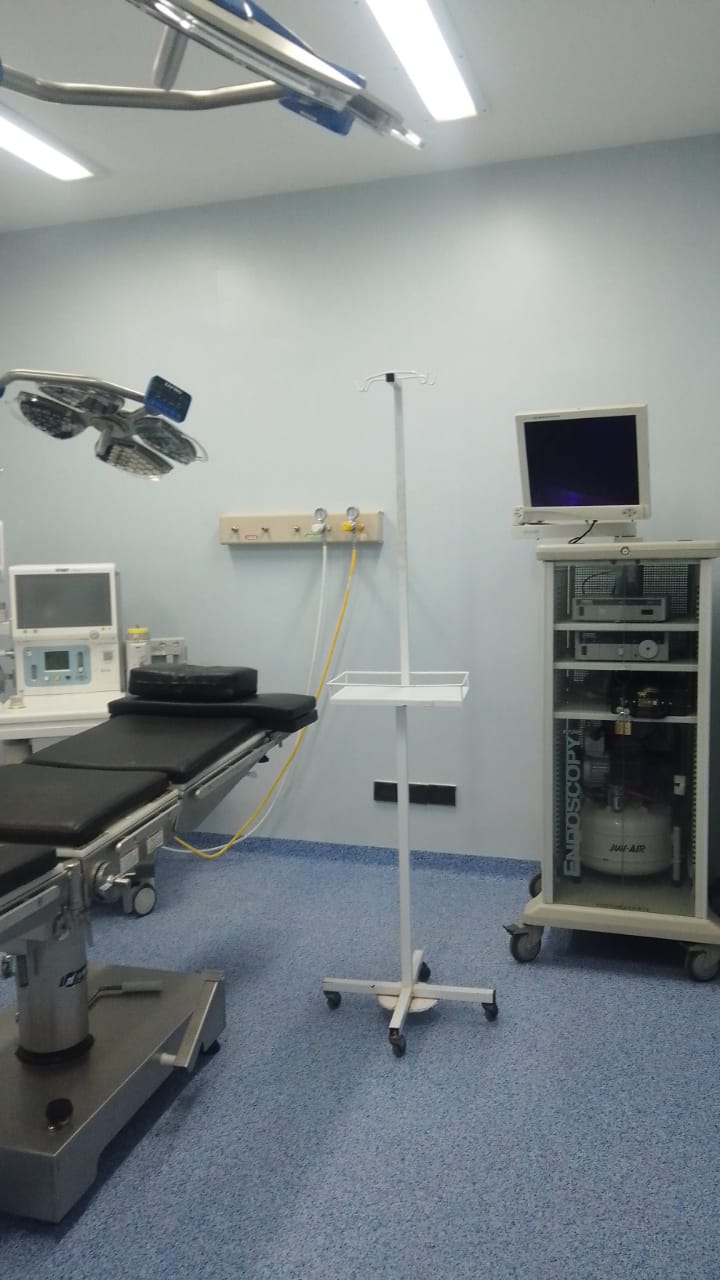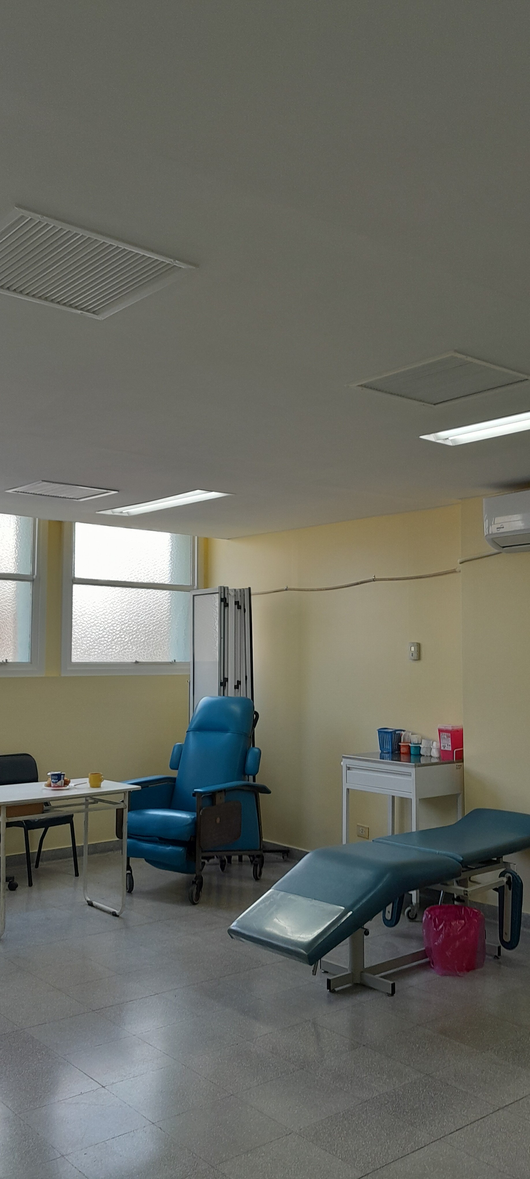 Las tareas de Obra Civil comprendieron la colocación de revestimientos y pisos vinílicos, la instalación de dos lámparas Scialíticas de techo, la realización de tareas de pintura en cielorrasos y carpinterías, el reemplazo de parte de la Instalación Eléctrica. Completando con la provisión de nuevo Equipamiento Médico, la realización de muebles de madera y de hierro, restauración de camillas, realización de soportes de monitores, colocación de cortinas roller y tareas de terminación en general.