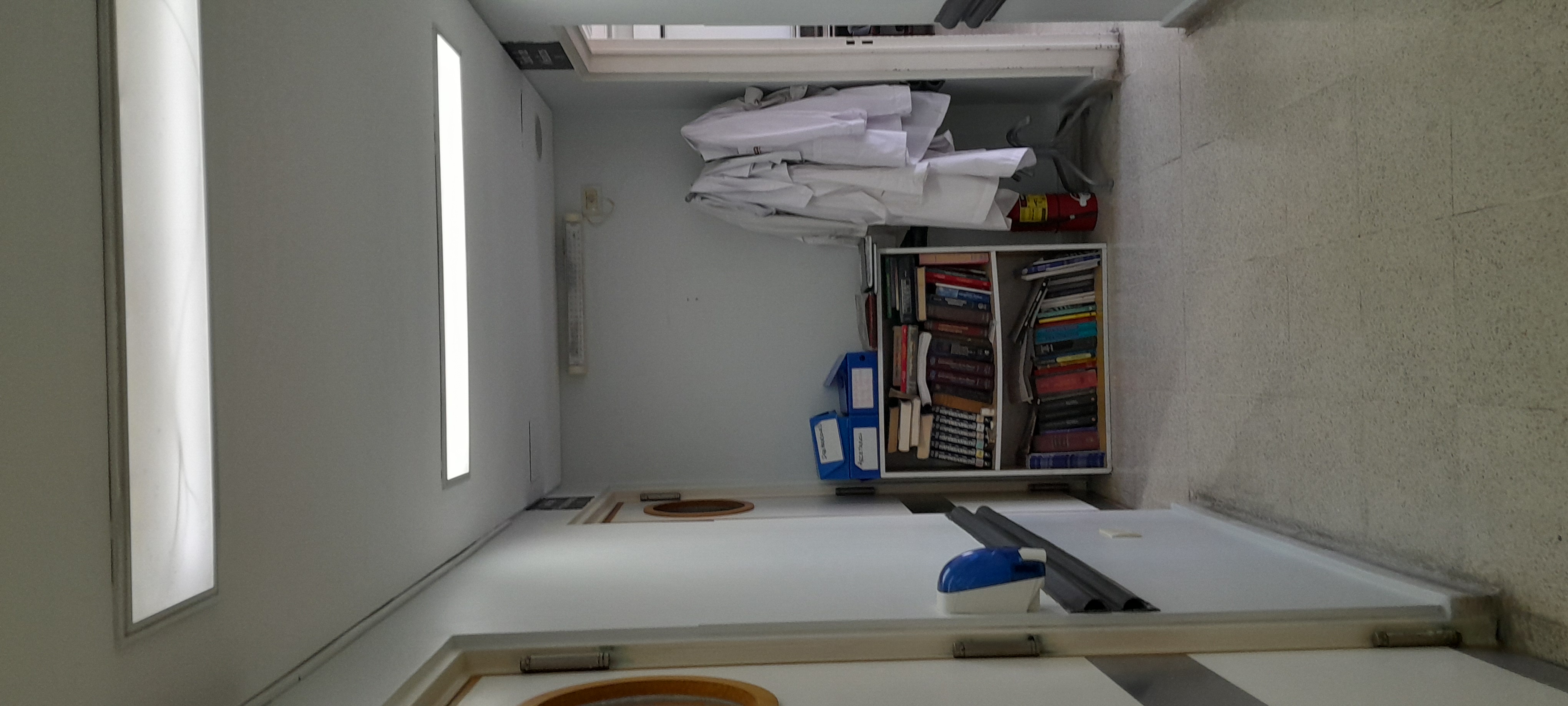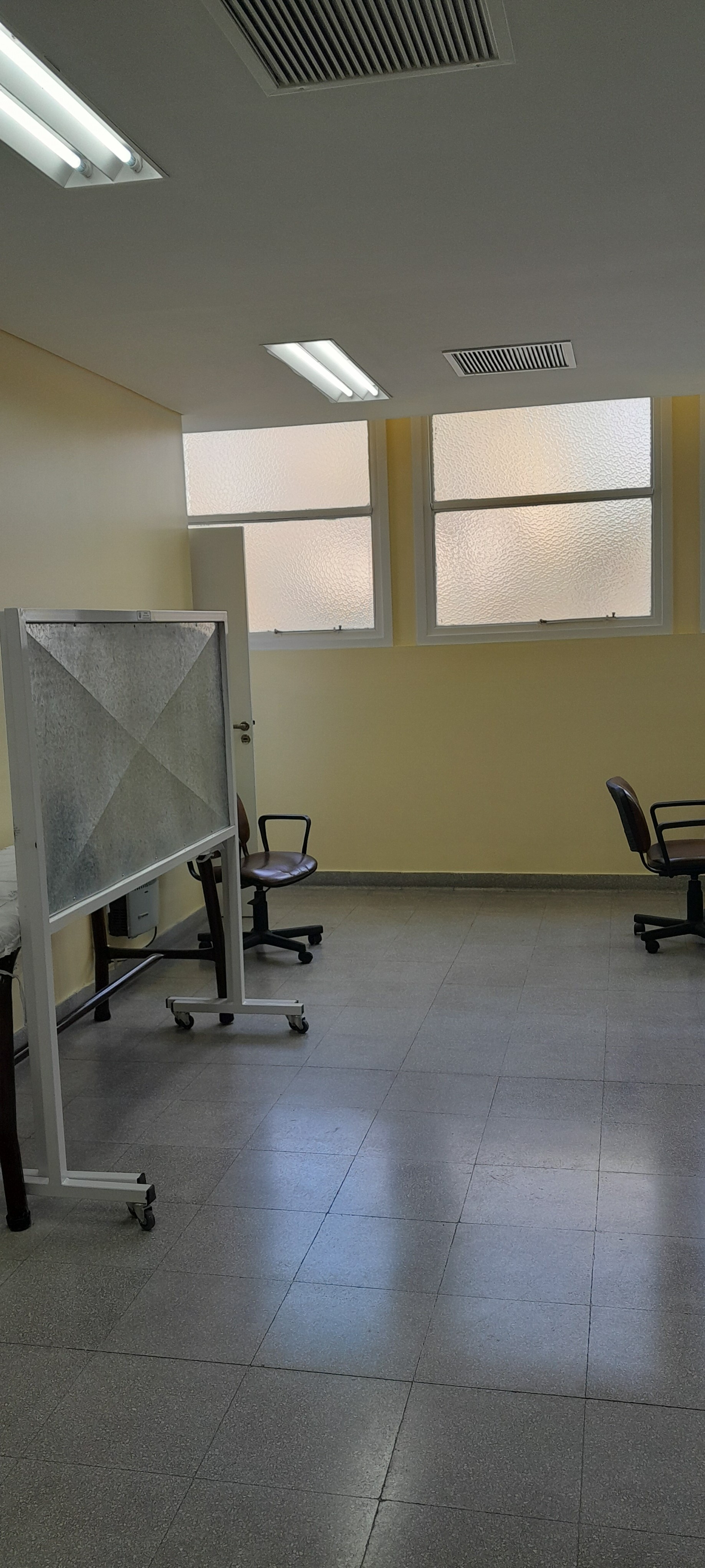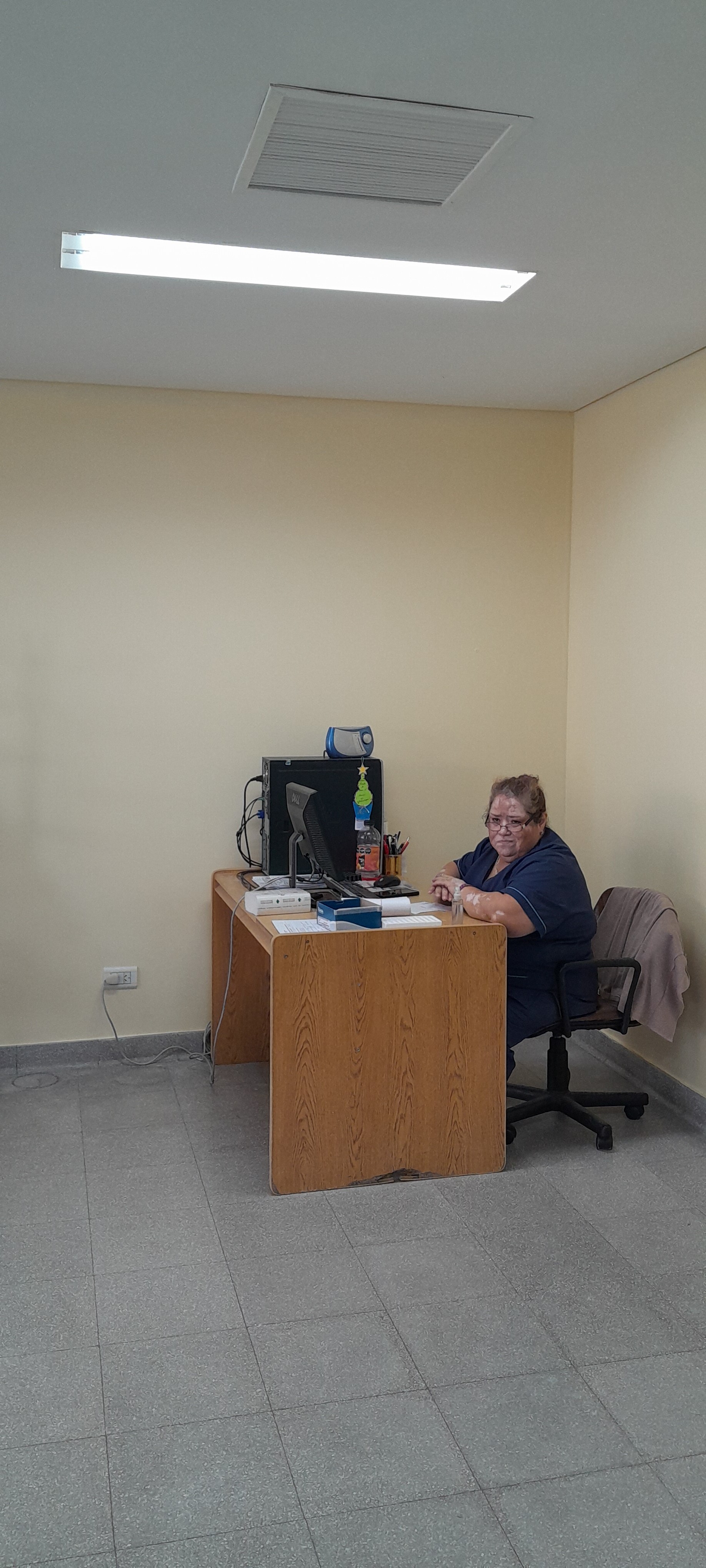 Ubicada en uno de los entrepisos de los Consultorios Externos y después de más de veinte años que se había pintado por última vez, con el mismo pintor que se pintaron las circulaciones y Salas de Espera del resto del Pabellón, se procedió a realizar tareas de acabado superficial en este lugar, compuesto por una amplia oficina y un despacho privado, destinado a la jefatura, donde concurre un importante número de empleados del hospital.