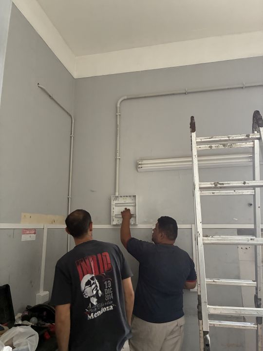 Las tareas comprendieron el desmonte de la totalidad del cableado existente, la realización de un nuevo Tablero Seccional dentro del Área, la alimentación del mismo desde una nueva línea directa y la ejecución de la Instalación completa de todos los locales que componen el sector. Se colocaron nuevas luminarias led, llaves, tomacorrientes y ventiladores de techo, completando la obra con la puesta a punto de los sanitarios entre habitaciones.