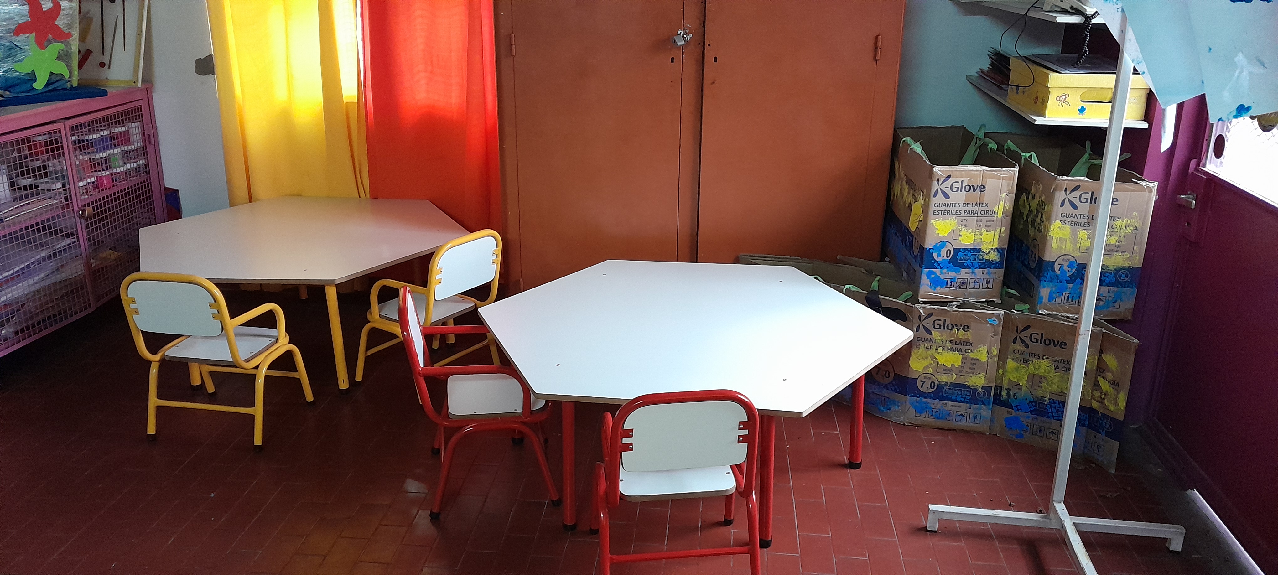 Luego de elegir entre dos presupuestos, se optó por el más conveniente a las necesidades del Jardín Maternal y se encargó a una fábrica ubicada en Lanús, seis mesitas hexagonales y doce sillitas con protección anti golpes, ambas en colores varios. Las mismas fueron oportunamente entregadas para formar parte del mobiliario adecuado a la edad de los niños que allí concurren diariamente, mientras sus padres trabajan en los distintos sectores del Hospital.