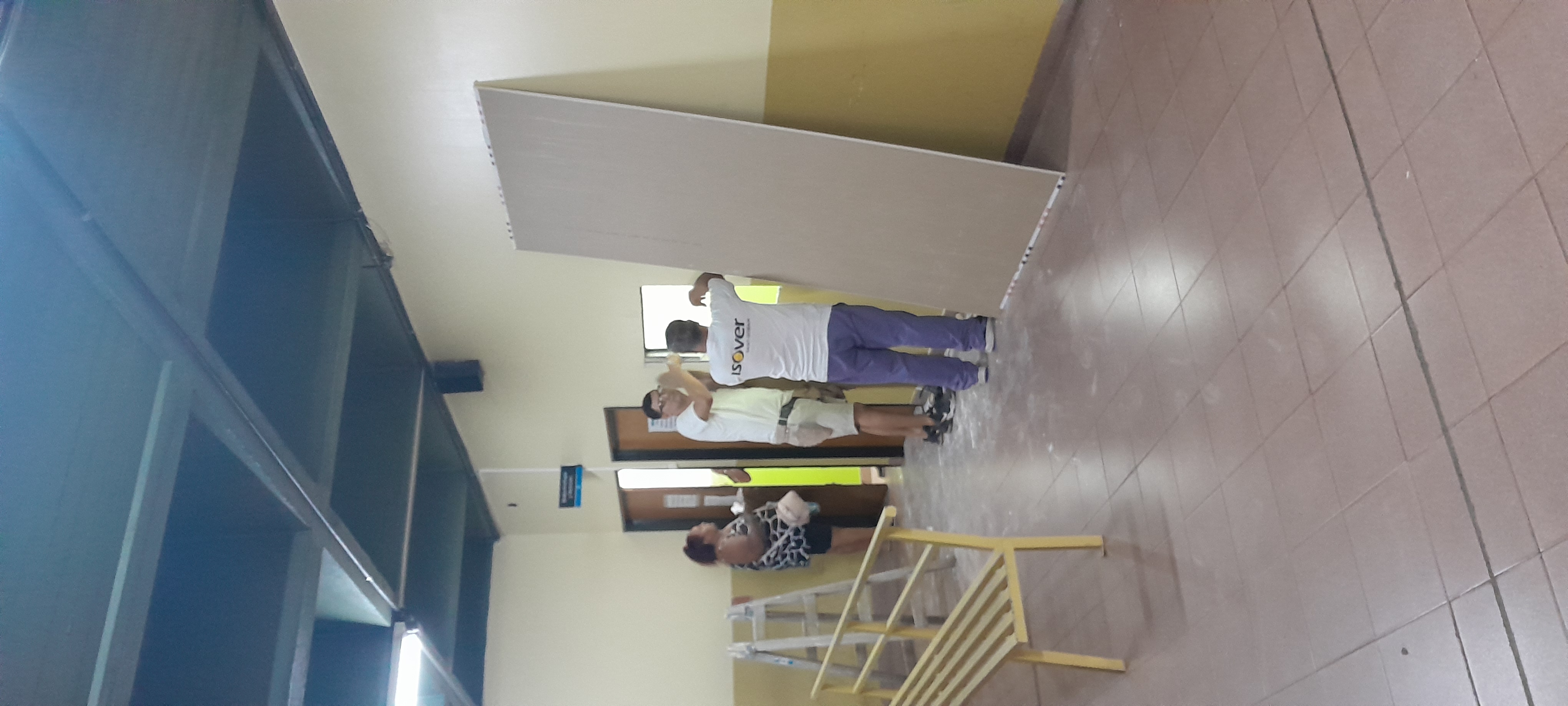 Como hasta ahora lo viene haciendo, la Cooperadora adquirió los materiales necesarios y el grupo comenzó con la reparación de revoques deteriorados, la aplicación de enduido y el lijado de las superficies. Luego se continuó con la pintura de los cielorrasos y los muros con látex acrílico, para finalizar con el tratamiento de las carpinterías de madera con esmalte sintético.