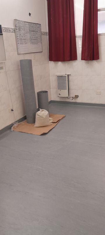 La cooperadora como en otras oportunidades tercerizó las tareas con una Empresa local, quienes realizaron la colocación del piso, logrando una superficie fácil de limpiar y mantener en condiciones óptimas.