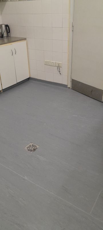 Por tal motivo, la Jefatura del Servicio solicitó unificarlo de la manera más simple, sin necesidad de realizar tareas de demolición, proponiendo la colocación de un piso vinílico hospitalario en rollo, con la junta sellada y zócalo sanitario.