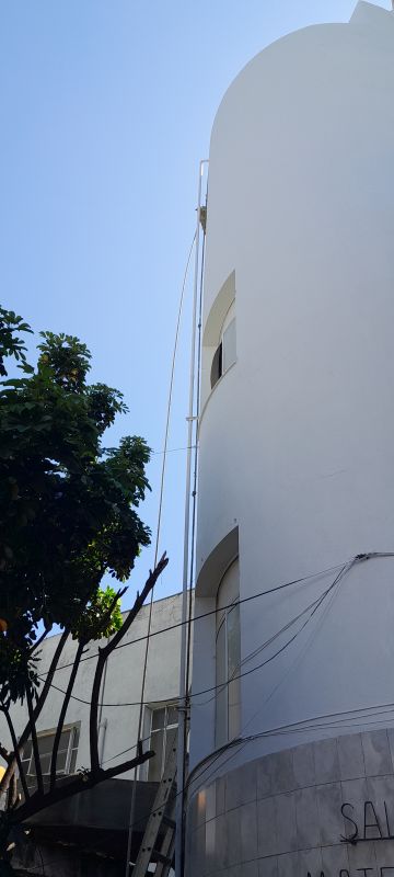 Porque estamos convencidos que no sólo los espacios interiores son importantes, los exteriores también deben brindar visuales agradables, a los pacientes o familiares que circulan por el patio interior del Hospital, comenzamos a pintar la envolvente de la Capilla en toda su altura.