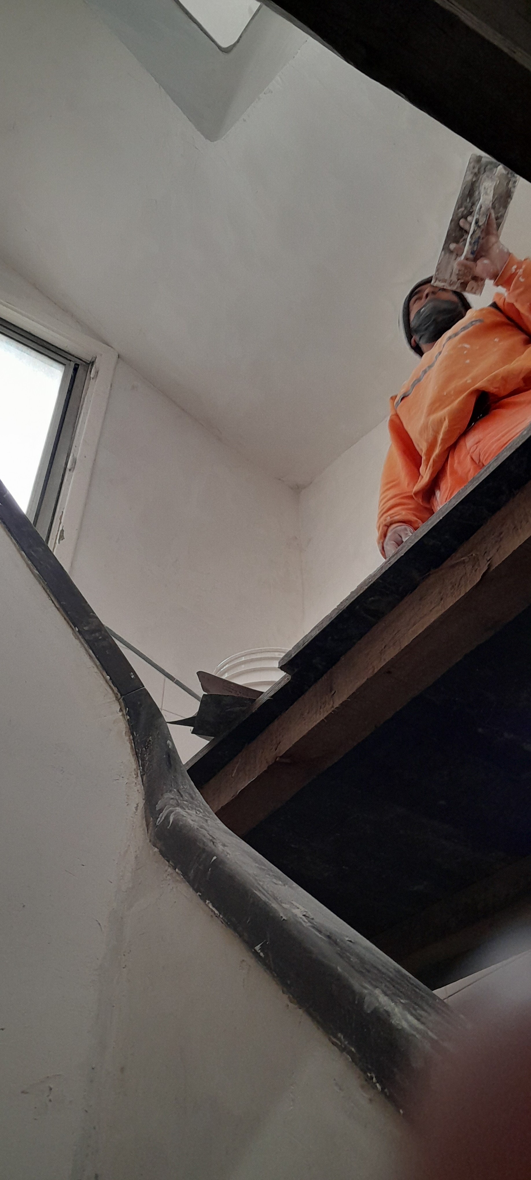 Dichas tareas comprenden el descascarado de sectores flojos de pintura existente, el preparado con enduido y lijado de las superficies de los muros; para la posterior pintura de los fondos de las escaleras y de los muros por encima de los revestimientos con látex acrílico y de las carpinterías con esmalte sintético. De esta manera dimos respuesta a una solicitud de la Dirección Ejecutiva y le brindamos al paciente espacios visualmente agradables e higiénicos.